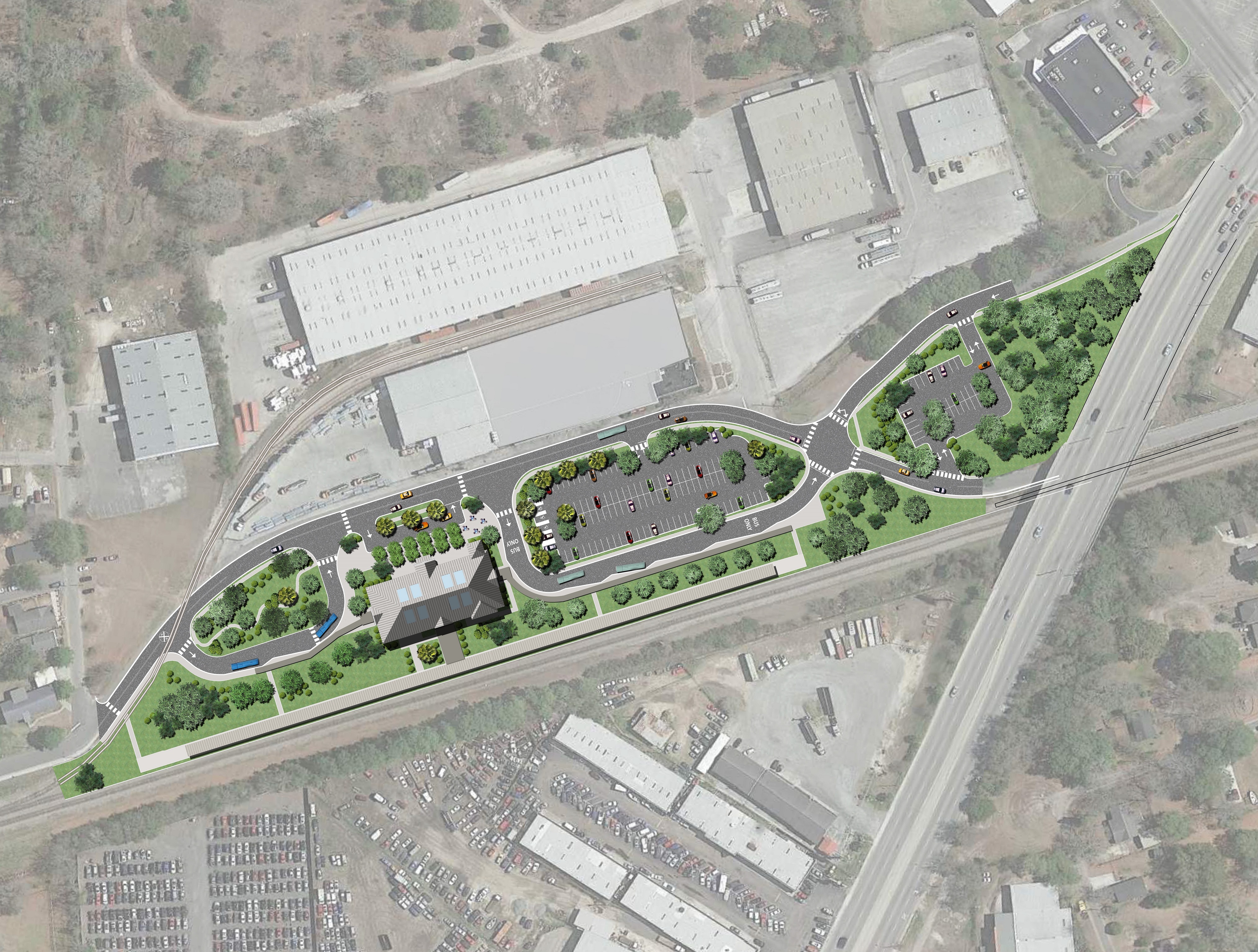 Davis & Floyd designed the new building, parking lot, and train platform, constructed on the original train station site, while the existing facility remained fully operational during construction. The team developed design solutions for multi-agency use of the facility; mitigated conflicts with new and existing utilities; and worked with two existing rail lines, which remained in use during construction.